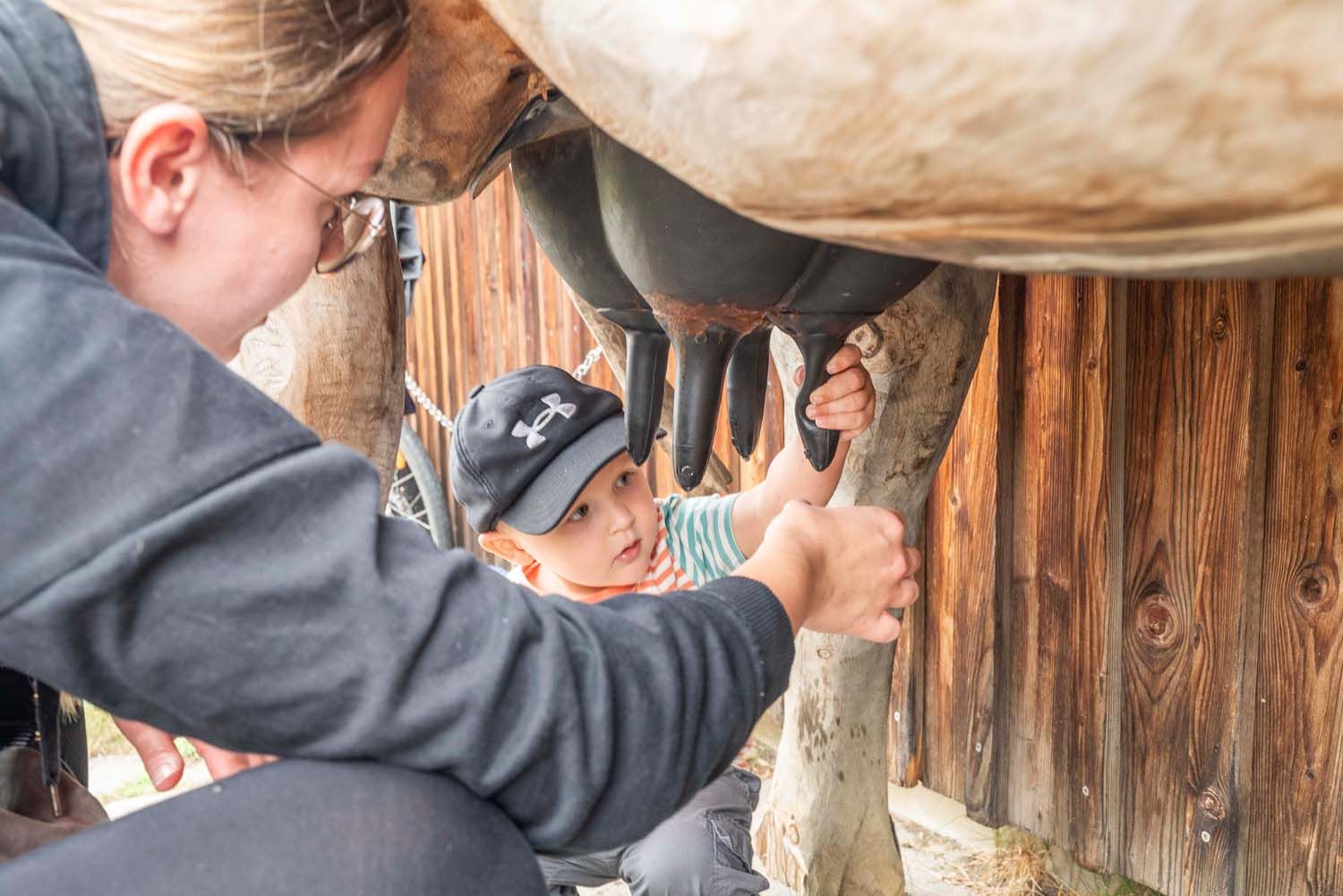 - Kuh melken: unsere Zirbenkuh „Zirbale”